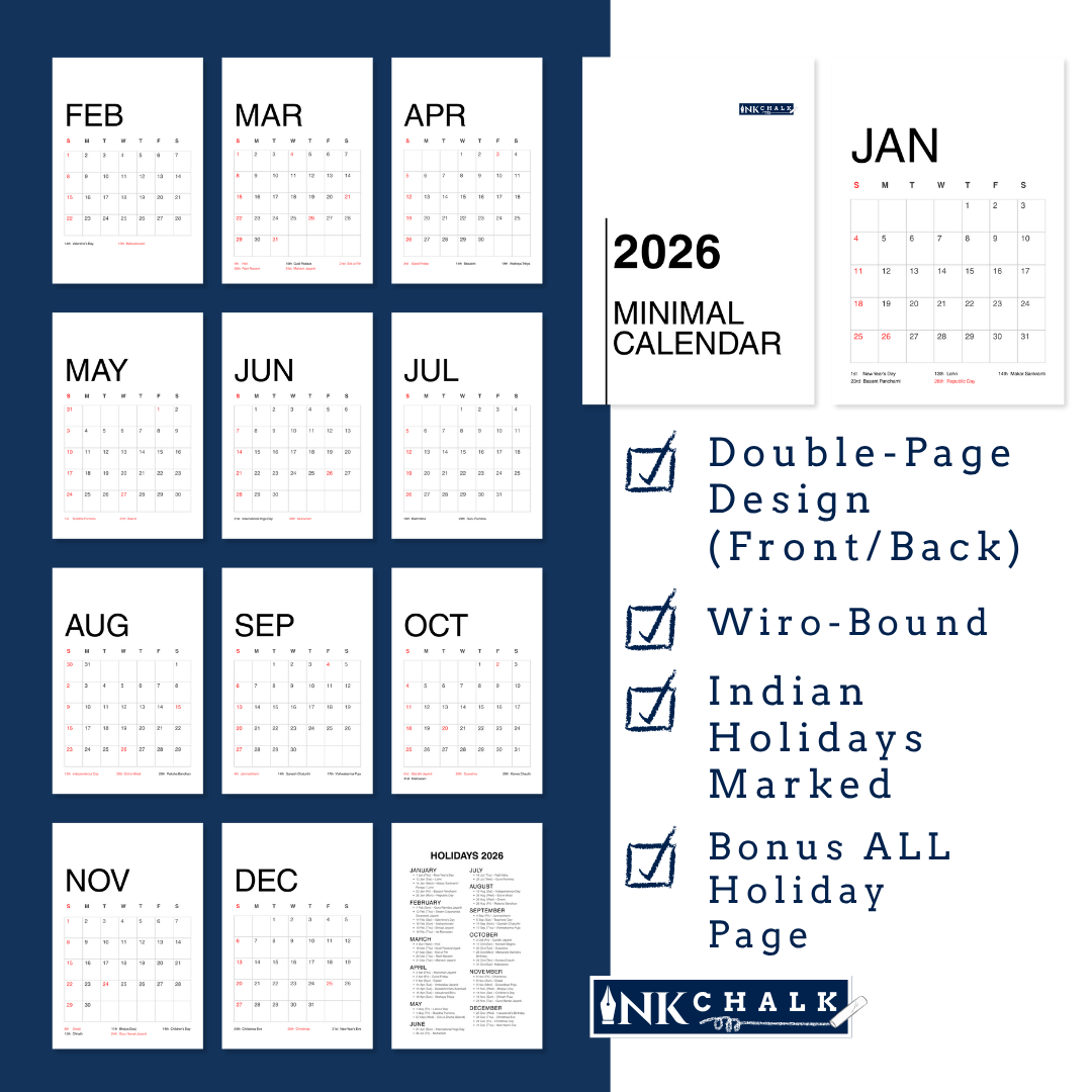 INKCHALK Grid Calendar | 2026 Desk Calendar | Portrait